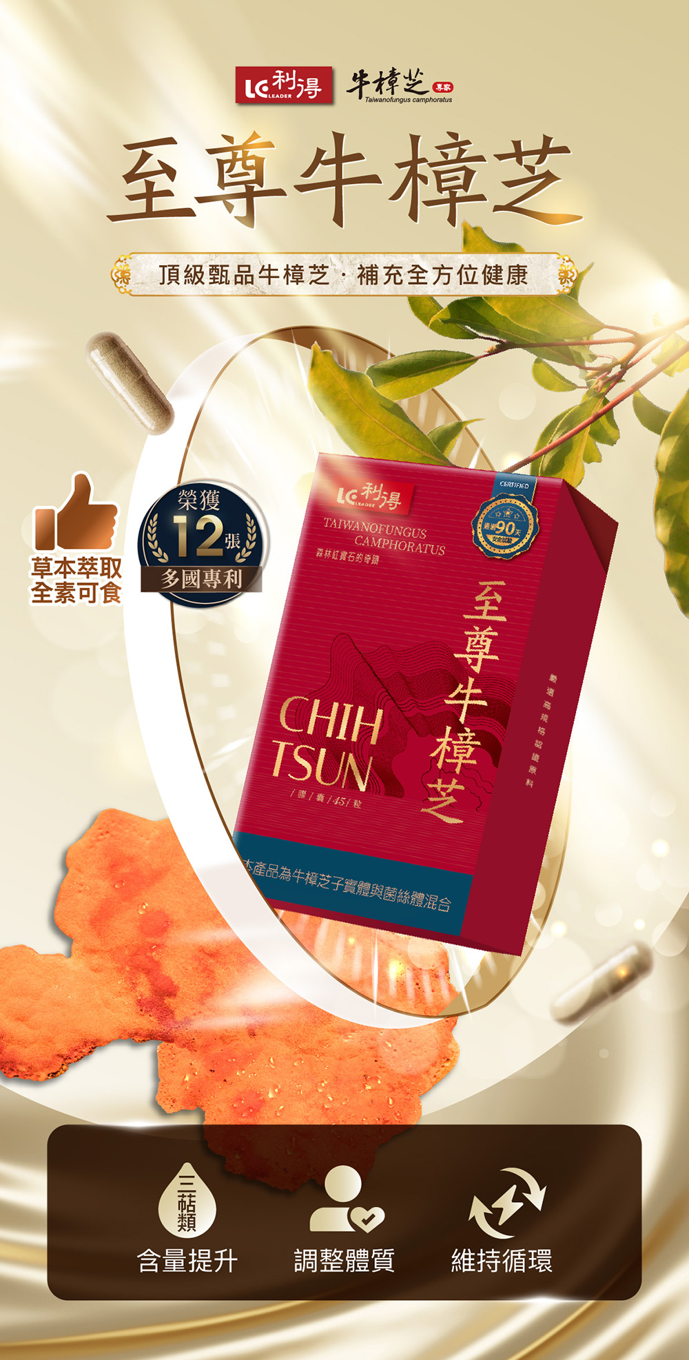 品名:至尊牛樟芝膠囊 (45粒/盒)